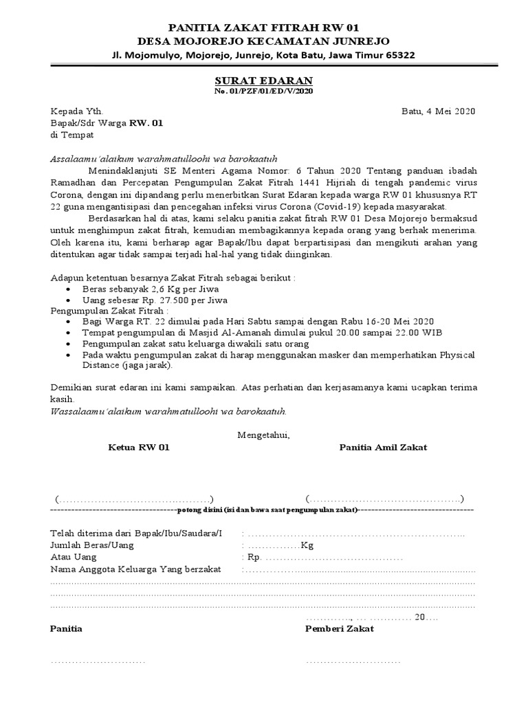 Contoh surat edaran zakat fitrah di masjid Contoh Surat Himbauan Zakat Fitrah Contoh Surat
