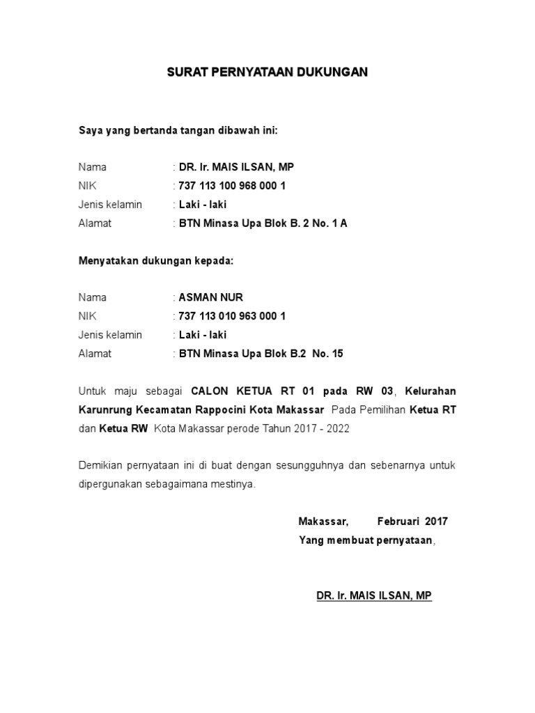 Contoh surat pernyataan kesanggupan menjadi ketua rt Doc Surat Pernyataan Rt Dyah Palupi Academia Edu